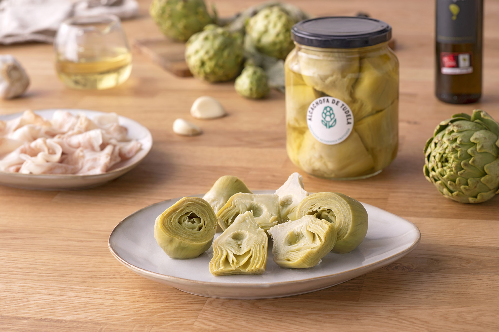 La alcachofa de Tudela es una de las verduras más ensalzadas por los gastrónomos. Denominada la flor de la huerta por su característica forma, en Navarra se cultiva únicamente la variedad “Blanca de Tudela” y se distingue de otras por su forma más redondeada y por tener un orificio circular en la parte superior debido a que las brácteas u hojas no llegan a juntarse para cerrar la cabezuela.
