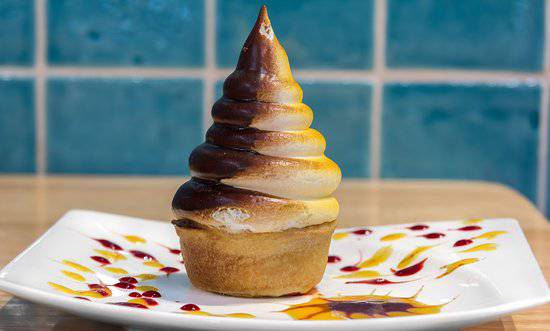 Dulce Carolina is a foam meringue on a fine flaky pastry base which is filled with confectioner’s custard, decorated with a film of egg on one side and chocolate on the other.