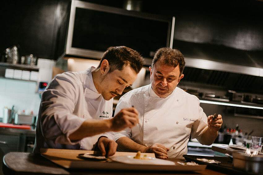 Situé dans un environnement naturel dans le quartier d’Ibaeta, avec une décoration de style contemporain et “euskandinave”, le chef de Saint-Sébastien renoue avec ses origines, proposant une cuisine d’auteur savamment actualisée, à base de produits, choyés sur le feu et pleins de saveurs.