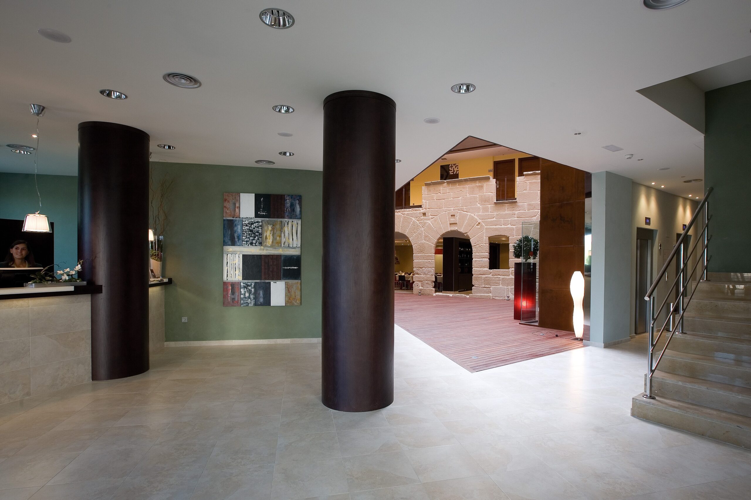 Son intérieur offre une atmosphère exclusive, où il a été possible de combiner en parfaite harmonie, la décoration la plus raffinée, grâce à l’intégration d’une arcade du XVIe siècle, anciens numéros impairs de la rue, avec les équipements les plus modernes : ascenseurs panoramiques, bois nobles et la lumière naturelle à travers la verrière de tout le bâtiment.