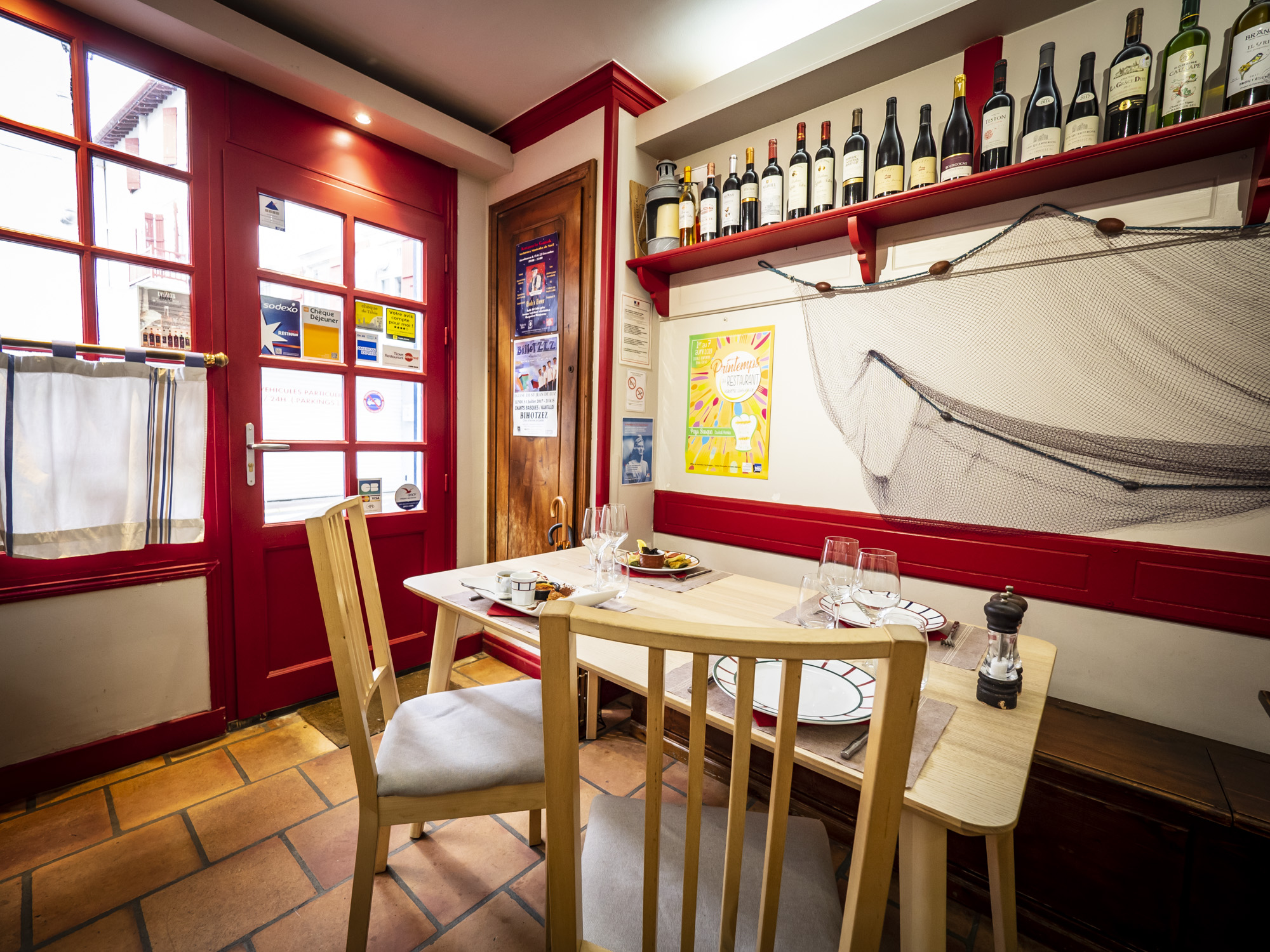 Une cuisine de plats traditionnels tels que la fameuse soupe de poissons ainsi que des plats typiques basques (merlu, chipirons, parillada..). Nous nous approvisionnons en poissons auprès des pêcheurs locaux.