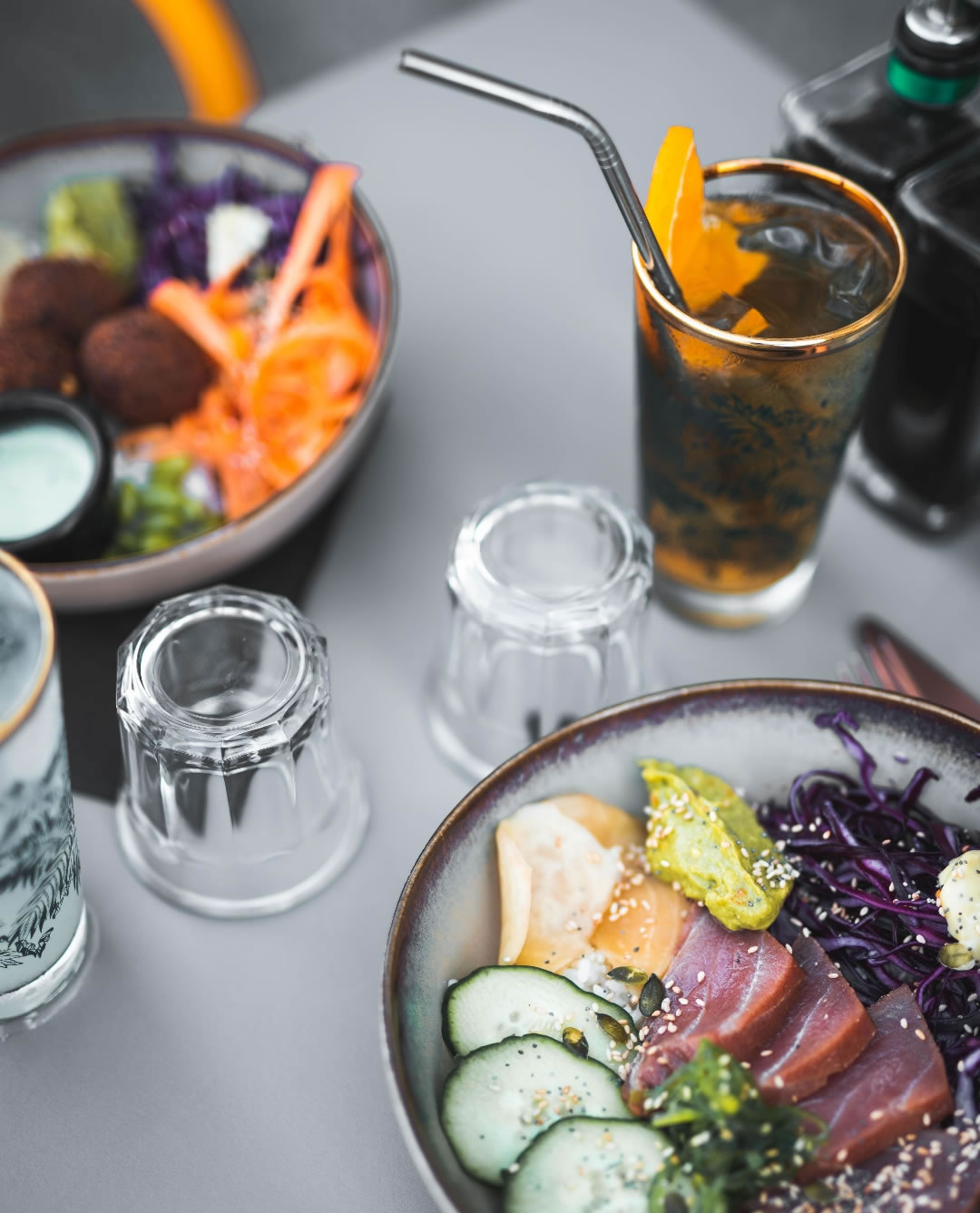 ¡Por la noche dé paso a cócteles y raciones siempre en torno a la cocina mundial!