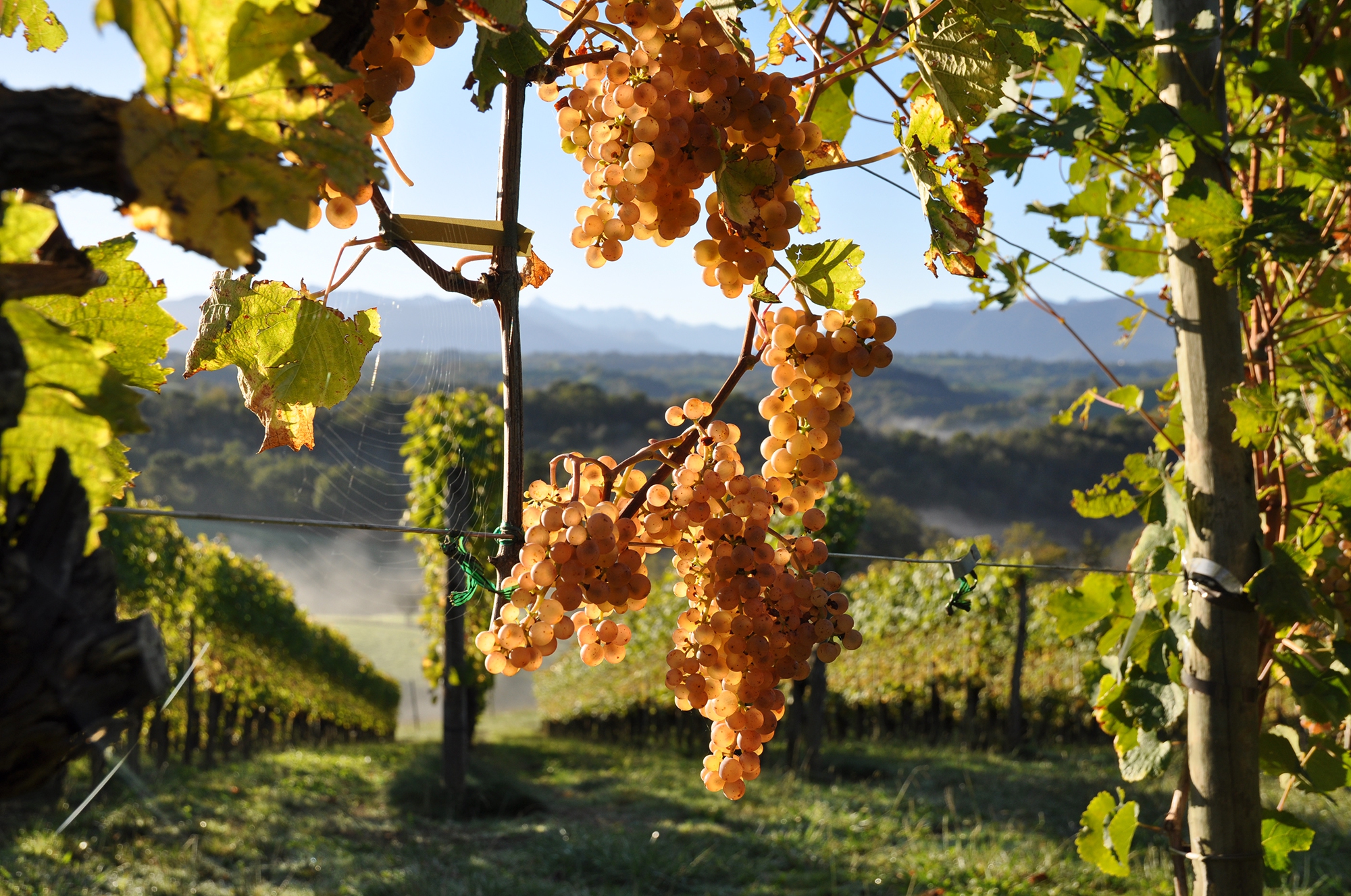 Garantes de la viticultura tradicional, perpetuamos los métodos de vendimia manual, selección de la uva y pasificación. Todo está hecho para sublimar la tipicidad de las variedades de uva emblemáticas de nuestro terroir: Gros Manseng, Petit Manseng y Tannat.