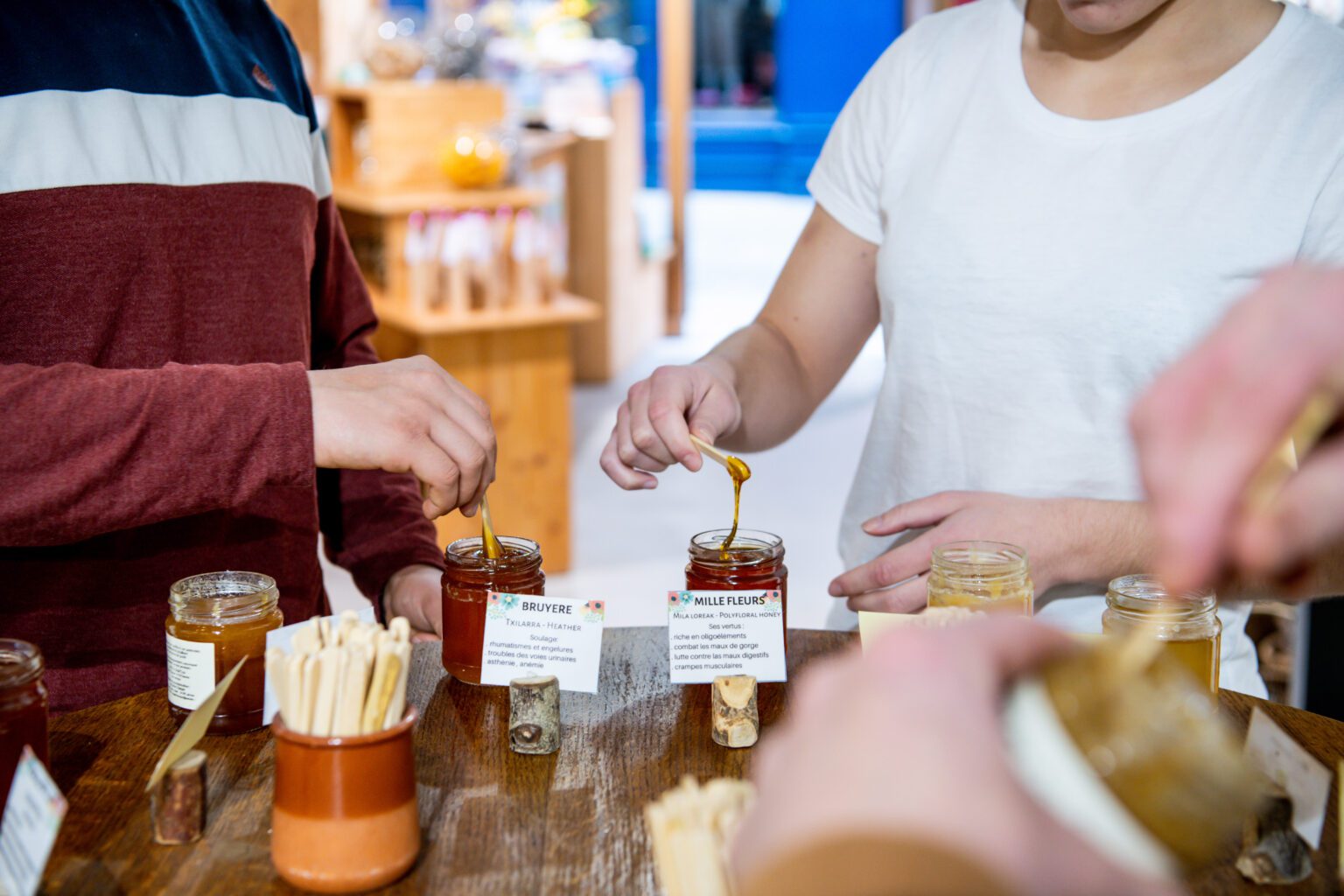 Loreztia Boutik’Expo es a la vez una inmersión en el mundo de la abeja y un espacio interactivo: encontrarás una exposición lúdica llamada “El hombre y la abeja en el País Vasco a lo largo de los siglos”, un rincón de despertar reservado a los apicultores en ciernes, degustación y venta de todos nuestros productos.