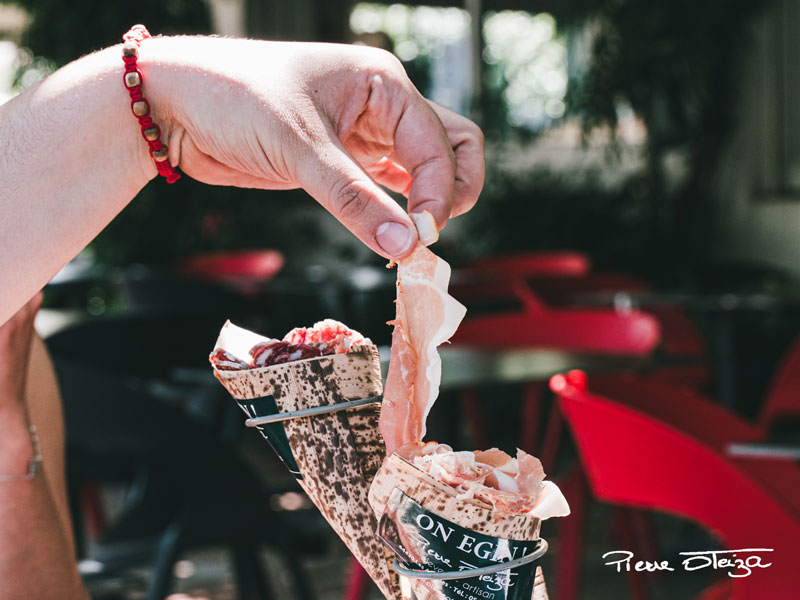 En Les Aldudes te prepara platos gourmet en el acto, las tradicionales tortitas de maíz con guarnición llamadas TALOA y cucuruchos de longaniza, chorizo, jamones, quesos… para los munchies.
